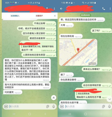 大约一周前,我的一个认识的弟弟,跟他朋友两人从金边乘车去西港跟他们的同学见面,当车行驶至半路之后遇到检查车被拦停,于是拦停的执法人员向我这位认识的弟弟索要了护照,我弟弟的护照证件是合法齐全的,交了护照给执法人员后,另一名执法人员表示前方是禁区,不能往前,之后我弟弟准备调头返回,却被执法人员以协助调查的理由被带上车,我弟弟表示自己是合法入境的,可是执法人员却说他非法入境,我弟弟表示自己证件齐全,执法人员问他你的证件在哪里?我弟弟表示刚才被他们的同事拿走了,之后执法人员说我弟弟狡辩,没人看到过他的护照,于是我弟弟和他朋友还是被带走了!到了办案的地方对方开价30000美金罚款,刚开始关押在拘留所,但是现在被转到移民局了。